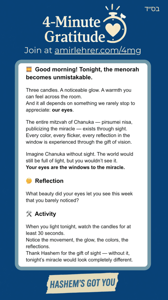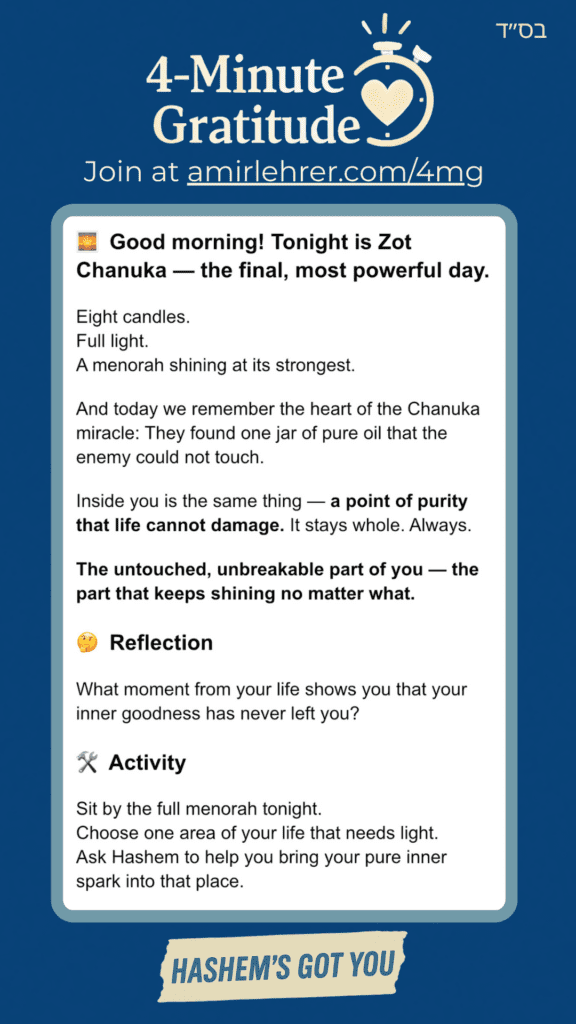These are the daily gratitude prompts I shared throughout Chanuka.
