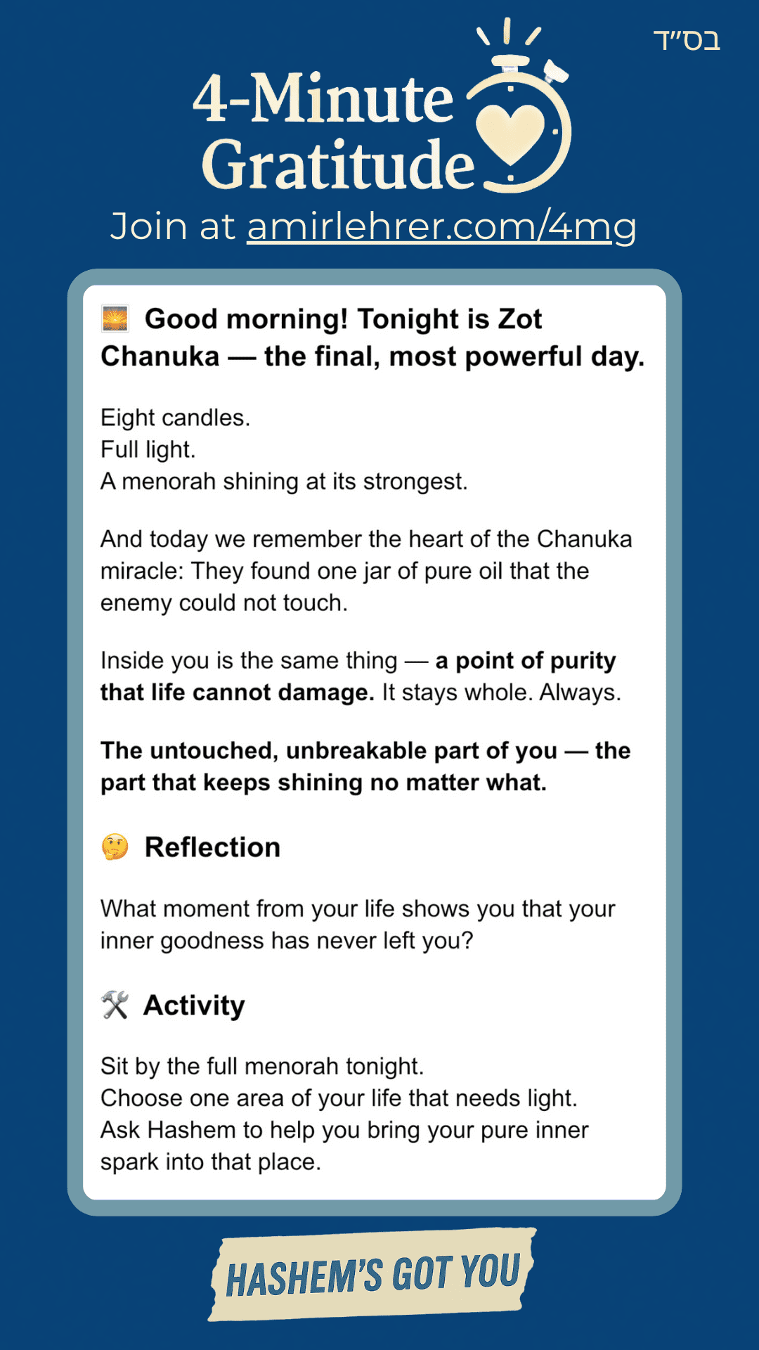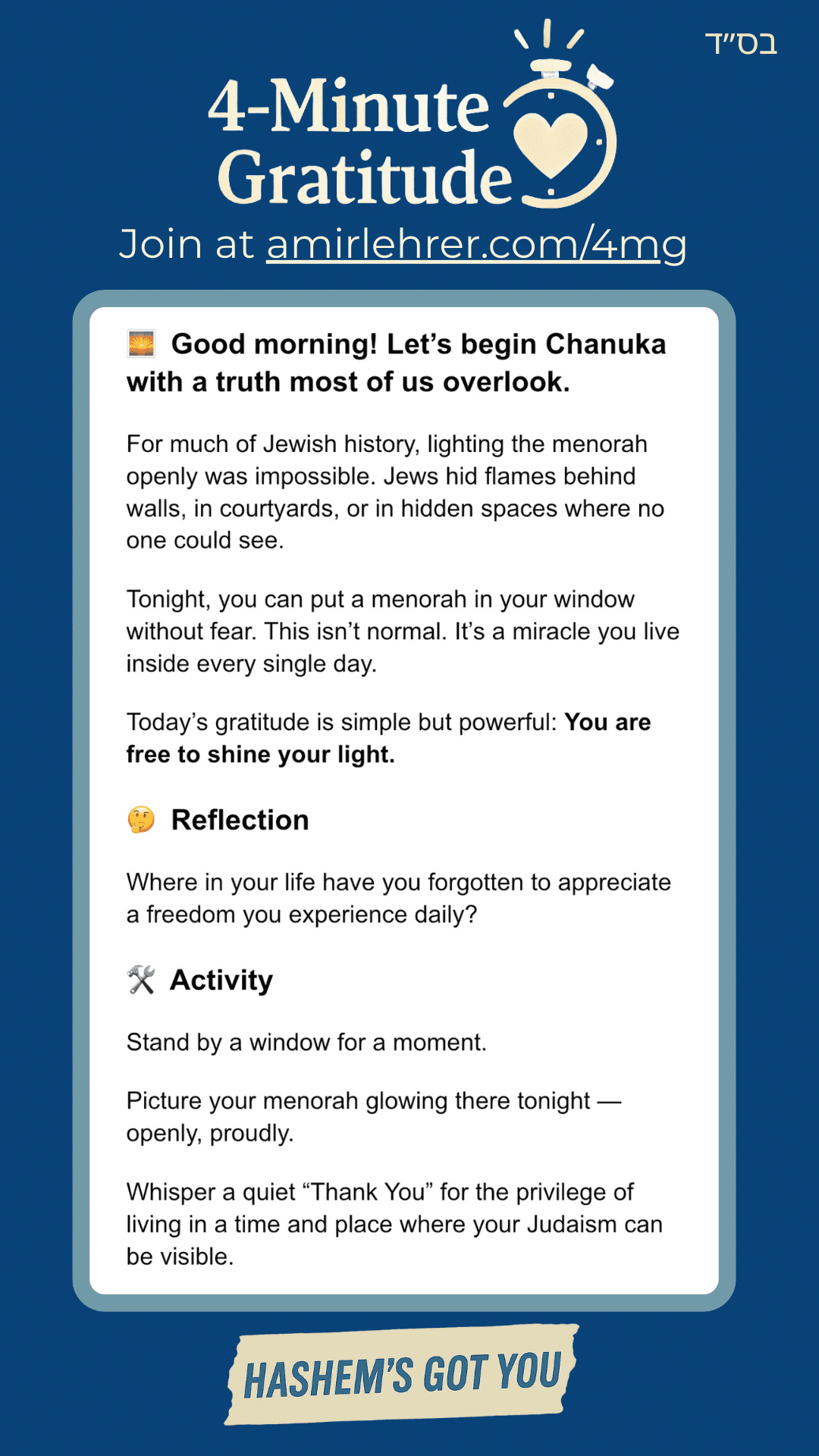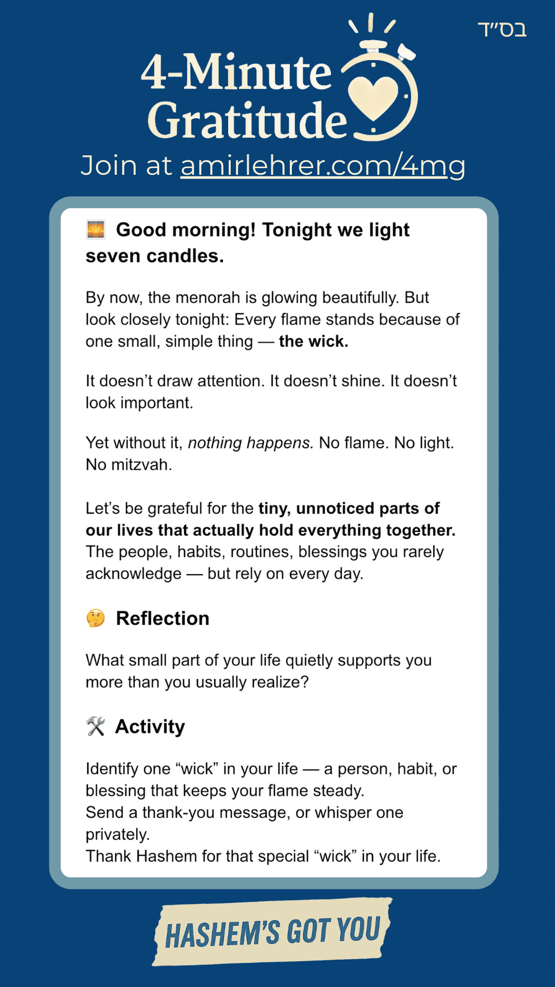 These are the daily gratitude prompts I shared throughout Chanuka.